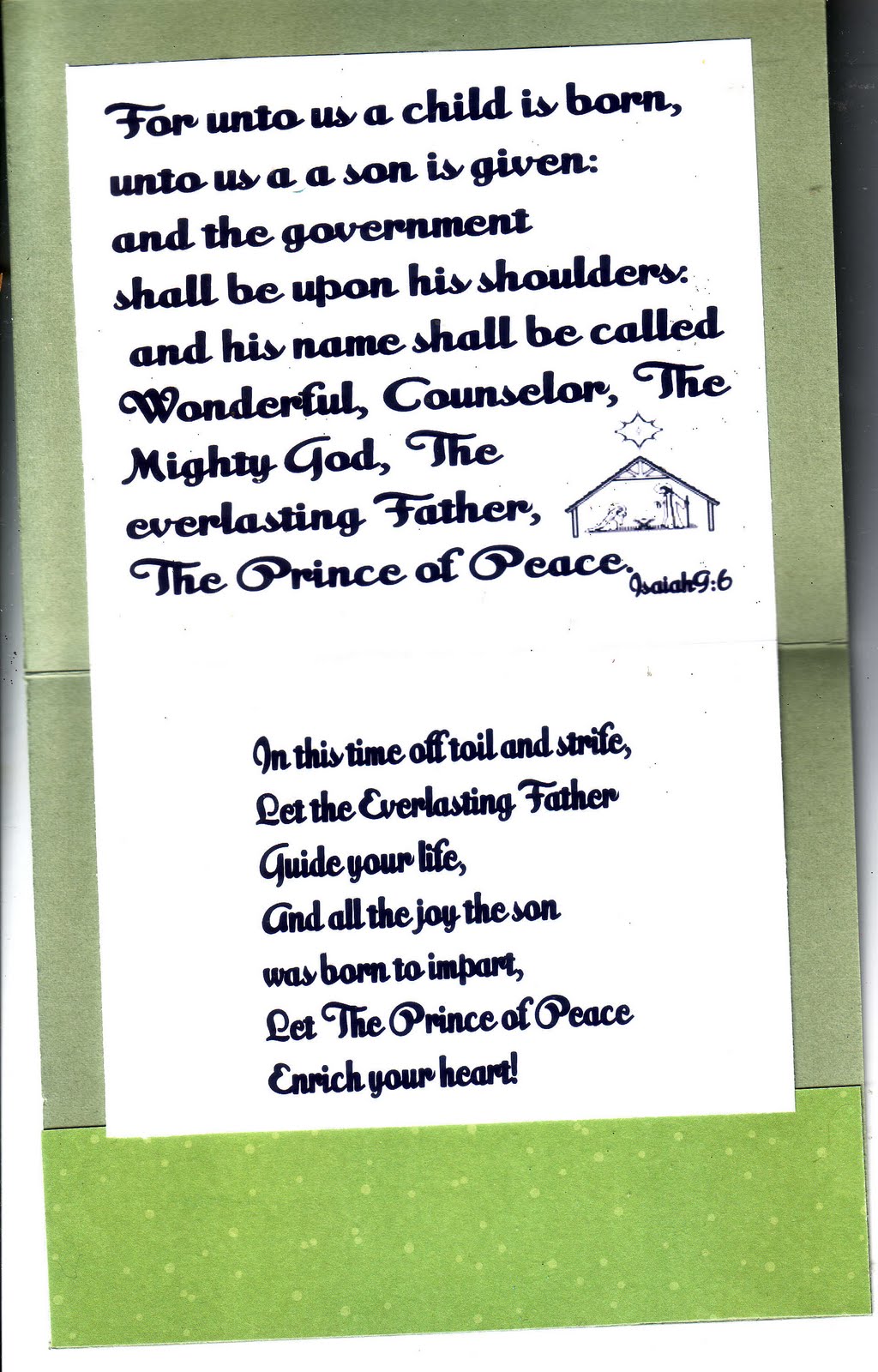 This year I had an idea and when it came to fruition I was quite pleased. This is a card made up of three books that tell the story of Jesus. The pictures in the waterfall got out of order when I uploaded them and the glitter does not sparkle in these pictures. Some of the pictures came out nice, the rest are unfocused.